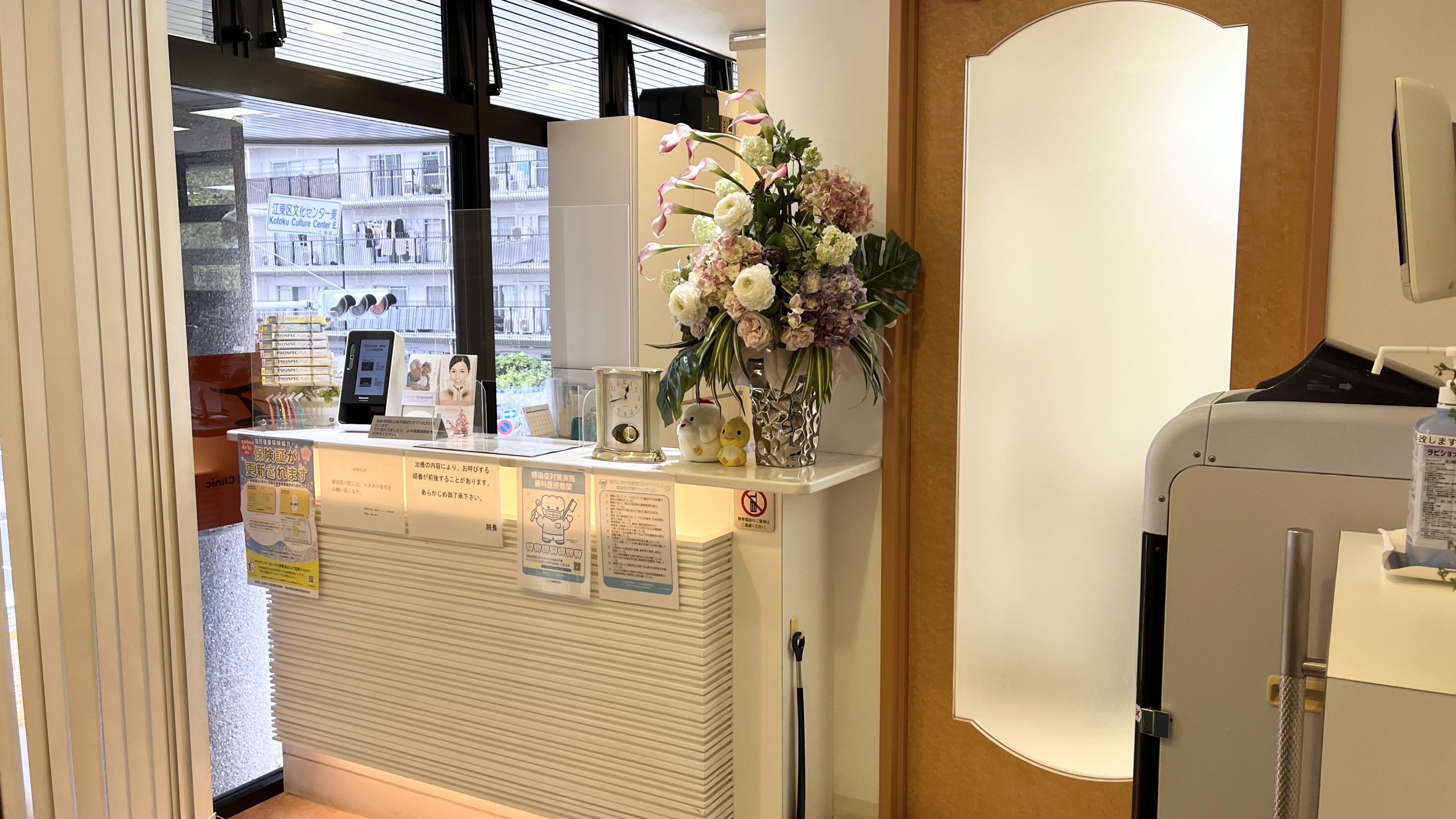暖かい雰囲気の受付では、スタッフが明るく患者さんをお迎え致します。