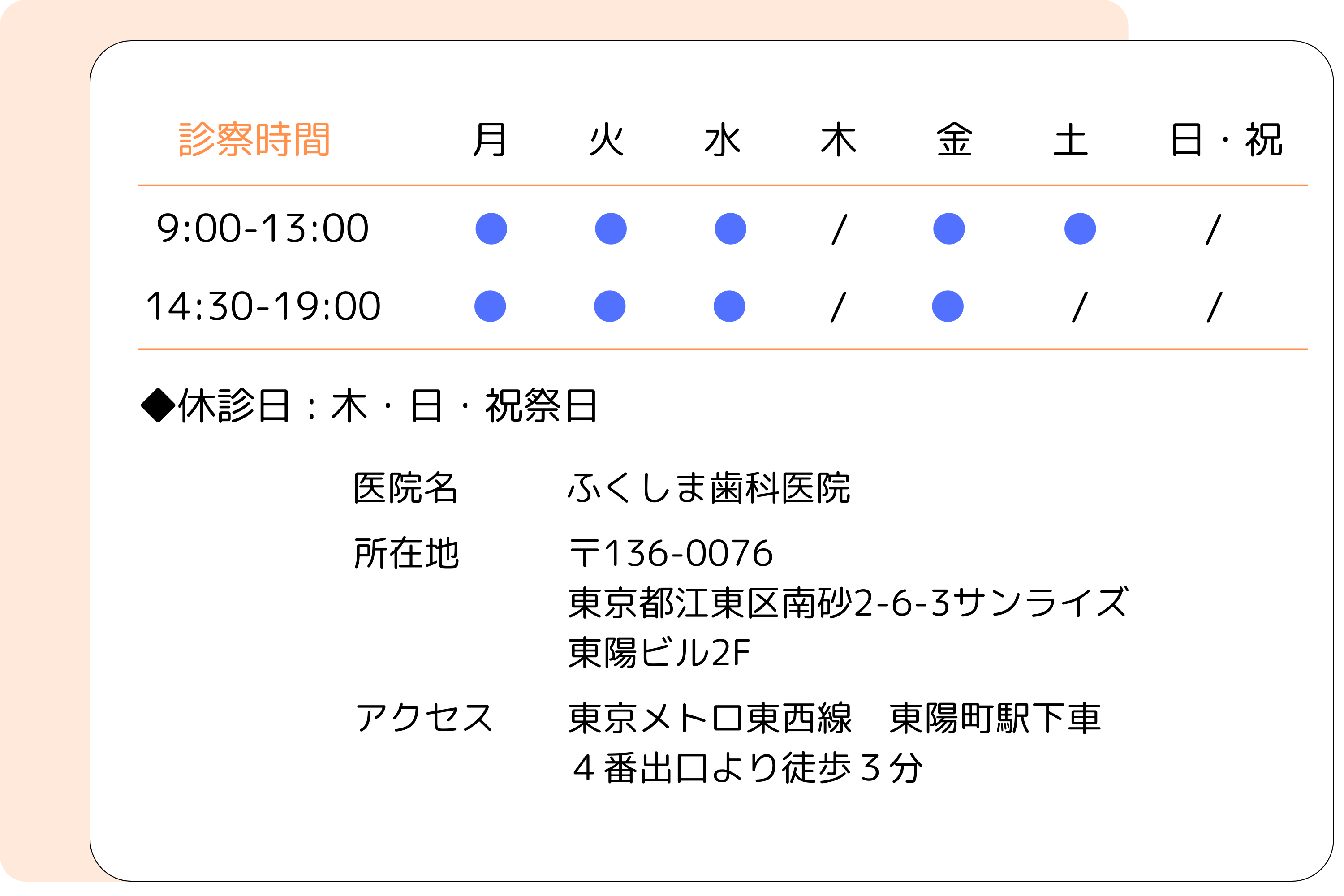 診療所は東京メトロ東西線「東陽町駅」から徒歩約3分の場所にあります。